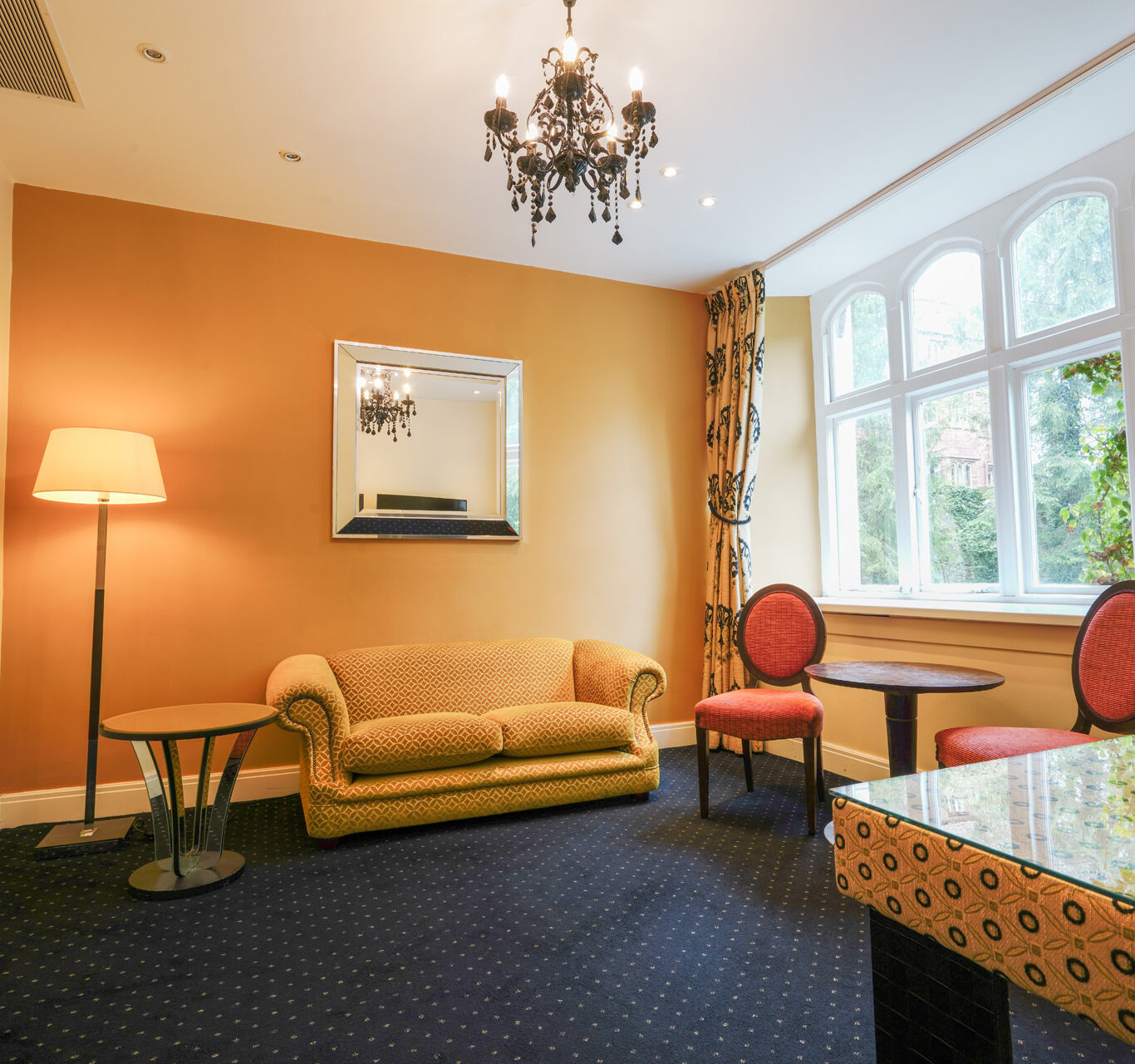 Named after the Myddleton family of Chirk who [following demolition of much of Ruthin Castle by Act of Parliament after its owner, King Charles I was defeated in the Civil War] built the core of the current castle within the ruins of the ancient castle around two centuries ago. This comfortable Suite looks into the wooded area around The Castle moat with private slate character bathroom. The lounge also contains a sofa bed for occasional use.